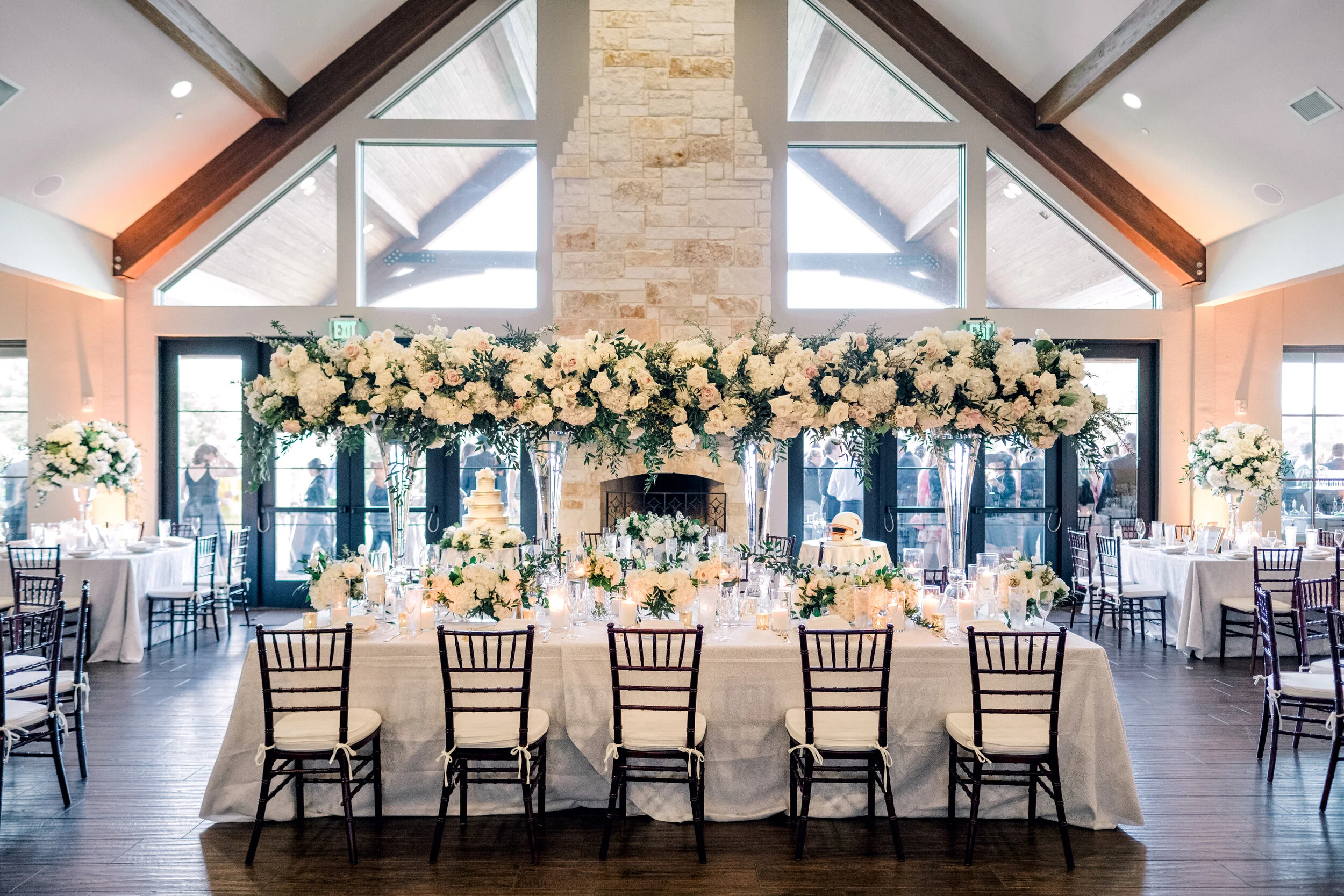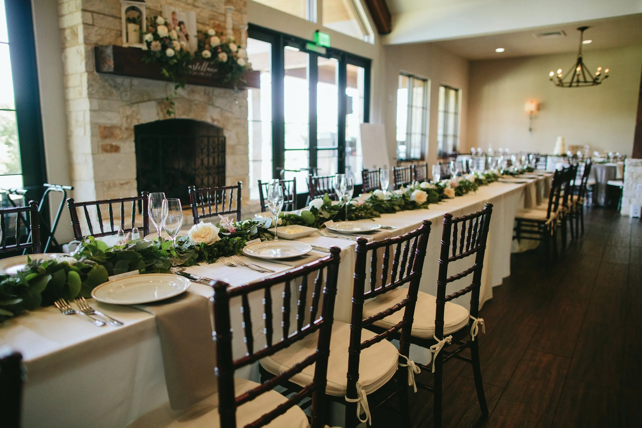 Head tables can also be inspired by seasons, especially when the Holidays approach and the roaring fireplace blends in effortlessly, giving a certain sense of home and comfort. See our Amazing Mantels Blog for more of our fireplace favorites.